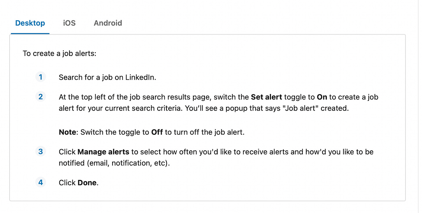Below are instructions for how to send LinkedIn job postings to your inbox: