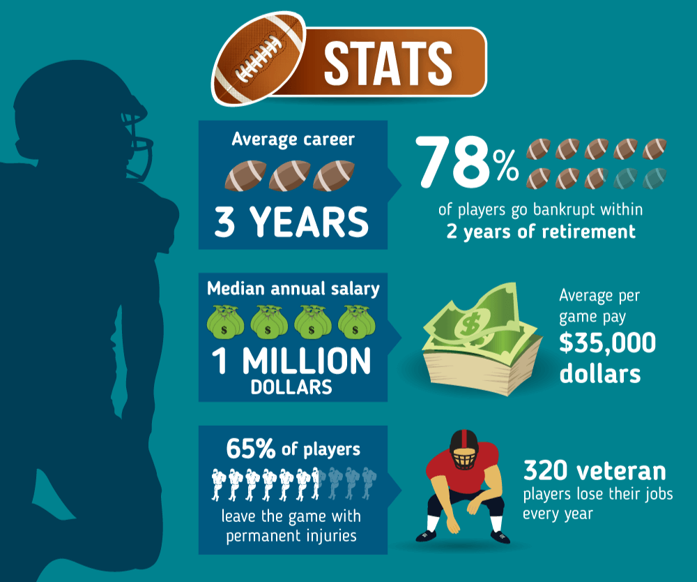 Short Career: The average player’s career is only 3 to 5 years long depending on the sport. (cbsnews)
